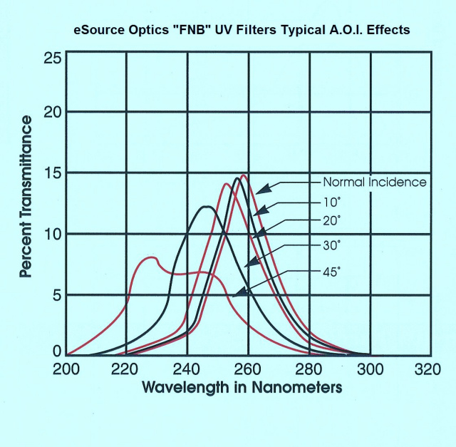 VUV-UV Narrowband Filter Typical ANGLE OF INCIDENCE (A.O.I.) Effects